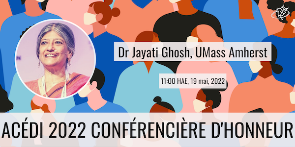 L’Association canadienne d’études du développement international (ACÉDI) est heureuse d’annoncer que la conférencière d’honneur pour sa Conférence annuelle 2022 est l’éminent économiste du développement professeure Jayati Ghosh, UMass Amherst.