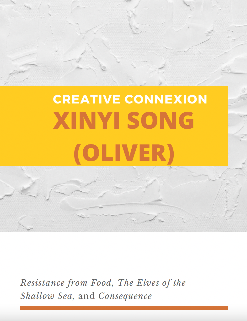 Oliver’s series consists of three paintings, Resistance from Food, The Elves of the Shallow Sea, and Consequence. All three pieces examine the interactions between climate change and animals, taking inspiration from current events, including overfishing and irresponsible disposal of waste.